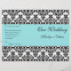 Aqua Blue, Black, White Damask Wedding Program
