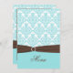 This aqua blue, brown, and white damask menu card matches the wedding invitation shown below. Please note that the ribbon and diamonds are printed images, and are not real. If you require any other matching items, please email me your request.