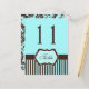 This aqua blue, brown, and white stripes and floral damask table number postcard matches the wedding invitation shown below. You must change the number 11 to each number that you need, add it to your cart, and then come back and repeat the process with each number that you need. Quantity discounts may apply once you add all the items to your cart. If you have any questions, contact me at niteowlstudio@gmail.com.