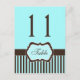 Aqua Blue, Brown, White Stripe Damask Table Number Postcard