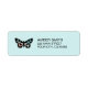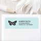 These watercolor return address labels have a colourful butterfly with pink, aqua blue, and black on mint green and aqua blue background. Chic and pretty address labels for your mail!