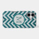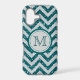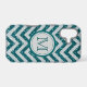 This is an especially pretty case, with dark aqua blue chevron stripes contrasted with silver faux glitter chevrons. At the centre is your monogram in aqua on a lighter circle banner lined in matching teal. A unique and elegant case! *Please note - the image is printed on the case, which contains no actual glitter or metallic substance.*