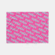 Fleece blanket featuring a custom name in an aqua blue script font on a hot pink background. Bold and colourful design.