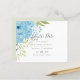 Aqua blue flowers feature on this modern wedding item which is part of a collection, ideal for spring, summer, fall or winter weddings. Ite,s in this collection include beduget and premium wedding invitations, rsvp thank you cards and save the dates.