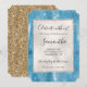 Aqua Blue Glam Glitter Tropical Leaves Invitation