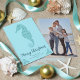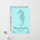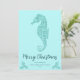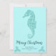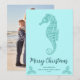 Aqua Blue Glitter Seahorse Coastal Christmas Photo Holiday Card
