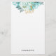 Elegant Aqua Blue Gold Floral Personalised Stationery.