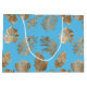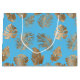 Aqua Blue Gold Tropical Leaves Large Gift Bag