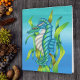 Aqua Blue Green Fantasy Sea Dragon in Seaweed Blue Card