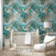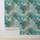 Aqua Blue Green Gold Marbled Wallpaper