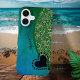 Aqua Blue Green Modern Floral Heart iPhone 16 Case