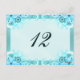 Aqua Blue Hibiscus Wedding Table Number Card
