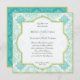 Aqua Blue Lime Toile Quatrefoil Wedding Invite