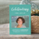 This elegant aqua blue photo memorial prayer card is a beautiful way to remember a loved one during the celebration of life service. This makes a beautiful keepsake you can display in your home after.