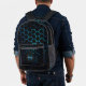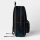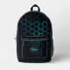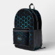 Aqua blue neon honeycomb geometry Monogram Black Printed Backpack.