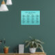 Wedding seating chart poster with ocean background. Aqua blue color with ocean water image. The seating chart has black text in both script, for table numbers, and printed text for guests' names. Married names at top in elegant and modern, hand-written font with one or two lines for date and location of celebration. Each table number section has room for up to eight guests, or list fewer as needed. Tables are listed horizontally, but that is easy to change by changing the numbers using the templates. For fewer tables, simply delete sections as needed, keeping the look symmetrical.