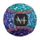 Aqua blue ombre faux glitter sparkles Monogram Baseball