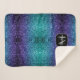 Aqua blue Ombre faux glitter sparkles Monogram Sherpa Blanket