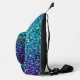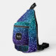 Blue faux glitter sparkles Custom Monogram Sling Bag. Cool fashion accessory bag for her. Beautiful girly glamourous blue shiny glitters sparkles design. Create a unique and personalised bag with a custom touch! Modern monogram with your initial and your name for that extra personal flair. We use Photo of sparkles, not real glitter!