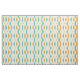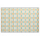 This fun mid-century modern fabric features 3 large diamonds with 2 stars in the centre, in a combination of the colours aqua blue, orange, and cream. This would make a colourful addition to your sewing project.