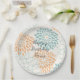 Aqua Blue Peach White Floral Birthday Paper Plate