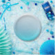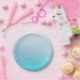 Personalised bride and groom initials and wedding date pretty Aqua Blue paper plates with fancy decorative black border.