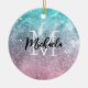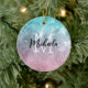 Aqua blue Pink ombre sea galaxy abstract Monogram Ceramic Tree Decoration