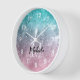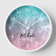Aqua blue Pink ombre sea galaxy abstract Monogram Clock