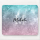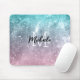 Aqua blue Pink ombre sea galaxy abstract Monogram Mouse Pad
