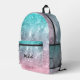 Aqua blue Pink ombre sea galaxy abstract Monogram Printed Backpack. Personalise backpack with your custom initial and name. Sea pink viridian green ombre abstract galaxy trendy design. Abstract digital galaxy with sea pink and viridian green ombre colours from coral collection.