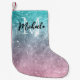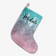Aqua blue Pink ombre sea galaxy abstract Monogram Small Christmas Stocking