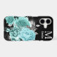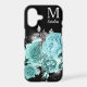 Floral phone cases are always beautiful, but this updated version is a winner! The elegant aqua blue roses are embellished with faux glitter silver leaves, and a few glistening star shines in the background. Your monogram and name are in silver at the top right. Everything is placed on a dramatic black background, which makes the image seem even brighter. Stunning!
