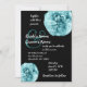 This design with its frilly aqua blue roses on a black background creates a distinctively different wedding invitation. You can experiment with different paper types to see which one you like the best. I recommend the ice hued metallic paper, which will give your wedding invitation a special shimmer and shine.