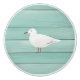 "turquoise teal blue seagull", "faux wood nautical sea animal", "light aqua ocean creature", "marina beach house decor", "marine drawer cabinet pull", "cupboard wardrobe puller knob", "pastel mint underwater life theme", "white beachhouse slats stamp", "wooden seagull bird", "horizontal distressed pier planks"