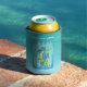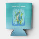 This can or bottle cooler has an aqua blue and white seahorse creature in an ornate blue frame with green seaweed and water bubbles on the front and back. Customise your text on the front and back with the template.