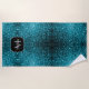 Aqua blue shiny faux glitter sparkles Monogram Beach Towel