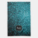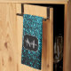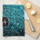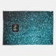 Aqua blue shiny faux glitter sparkles Monogram Tea Towel