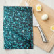 Aqua blue shiny faux glitter sparkles tea towel