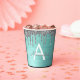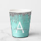 Aqua Blue Silver Glitter and Sparkle Monogram Paper Cups