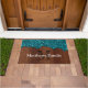Aqua blue sparkle rustic wood family Monogram Doormat