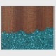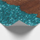 Aqua blue sparkles glitter rustic brown wood wrapping paper