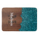 Aqua blue sparkles rustic brown wood Monogram Bath Mat