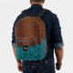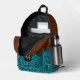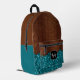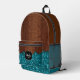 Aqua blue sparkles rustic brown wood Monogram Printed Backpack