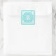 Aqua Blue Square Greek Key Border Monogrammed Sticker