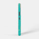 This glamourous phone case has a background of deep aqua blue with tiny silver and gold star bursts. The top is covered with silver faux glitter drips. Your name is in white script diagonally across the bottom. Pretty!