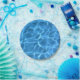 A bright coloured swimming pool photo for a birthday party, swimming and diving sports award ceremony, or other poolside special event celebration.