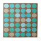 A colourful modern pattern with my original abstract art, vector art and design. This contemporary ceramic tile has a geometric graphic art pattern of dots/circles with lovely shades of aqua blue, teal, green, and chocolate brown. These modern design tiles would look great in any modern or contemporary home decor. You can use them as trivets or to decorate your home!