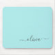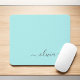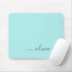 Aqua Blue Teal Girly Script Monogram Name Modern Mouse Pad