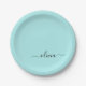 Aqua Blue Teal Girly Script Monogram Name Modern Paper Plate
