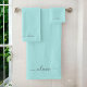 Aqua Blue Teal Modern Script Girly Monogram Name Bath Towel Set